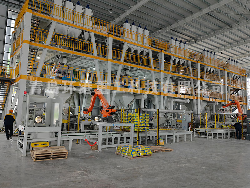 一、自動化程度高:通過總控系統,所有原料(包含添加劑)自動計量、自動輸送、自動混合、自動包裝、自動輸送、自動碼垛成型,整個生產過程沒有人工參與,大大降低人工成本。